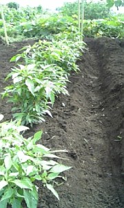 ①雑草と肥料・・・1か月前肥料があげられた1,2列間に元気すぎる雑草を確認したので今回は改めて土中に混ぜました。