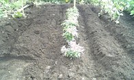 4本をl間引きと味の確認用に。二本迄は根から抜きましたが他の二本は3,4本の根分け葉だったので途中から鋏で切って①再土盛り・・・先週再盛りした2つの葉(枝)は大雨でも問題なくいてました。