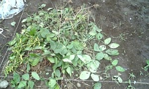 枝豆の葉を中心に。各野菜ごと取り除きました。人参と宇根間に多少残りました。