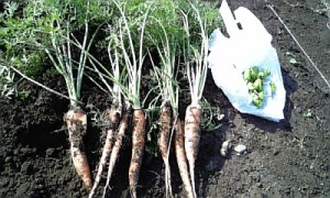 【2、新種植えと収獲 】 収穫は、間引き用の人参と獅子唐、新種は無しです。