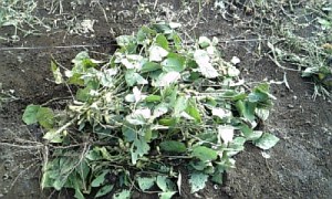 黒い点の虫入り以外は大丈夫と思い収獲しはじめました。が、房の形が歪なので鋏で切って中を確認するとなんと芋虫が。この歪房が半分以上。黒い点の房が4割あるので、合計9割。途中まで収獲しましたが根こそぎ全除去です。よって整地して新宇根としました。①教訓 ・・・実の形が出来てからは液体などの薬が必要です。3割程度出来るまでは全く問題なかった「福の泉(ブランド名)」。このタイミングで薬品が必要なようです。組合長が難しいと言っていた言葉を思い出します。