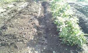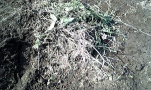 (5)獅子唐と唐辛子 雑草取り除き。獅子唐唐辛子共に葉サイズ1.3倍で未だ成長中。一部蟻の巣が拡大していました。隣接畑を見てもまだまだ感。赤い獅子唐は無く5,6個収獲しました。唐辛子はそのまま。自宅で乾燥目的の2週間後の唐辛子は腐ってしまいました。