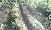 (1)小松菜 種と肥料の2つの袋の説明書き『植えつけ初めの土に混ぜる』を確認して土に混ぜてから種植えを実施。宇根の半分に筋蒔き。間引きが重要です。15~20個くらいが目標。