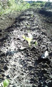 (1)小松菜+半分空き宇根に蕪の芽が出た