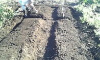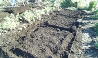 種の再植えによる例の糠(ぬか)虫除けを(黄粉色)サラサラと撒きは今回に同じ。半部(後ろ)の空き宇根には、蕪の種をまきました。
