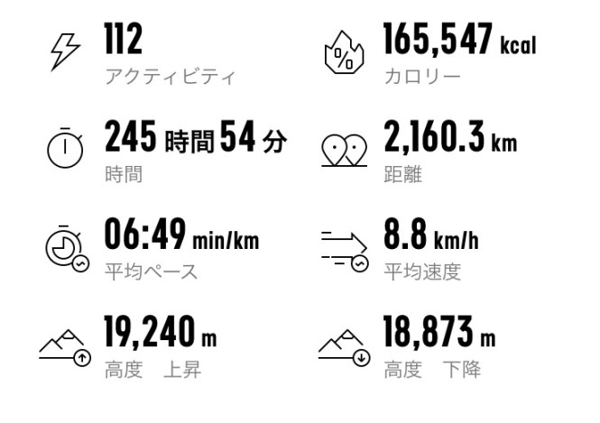 2千130キロ/年間 runnnig、完結。スピードは。。。1-2月分以外の範囲では二千3百キロもありますが、including +options 8hours climbing 振り返ります。
