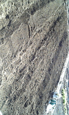 ↑am6:45一番奥に雑草を発見。しかし草は一列。作業後に取り除こうと思った矢先@YosiyukiHさんから先週奥様と来た際に植えたことが判明。場所はジャガイモの隣。