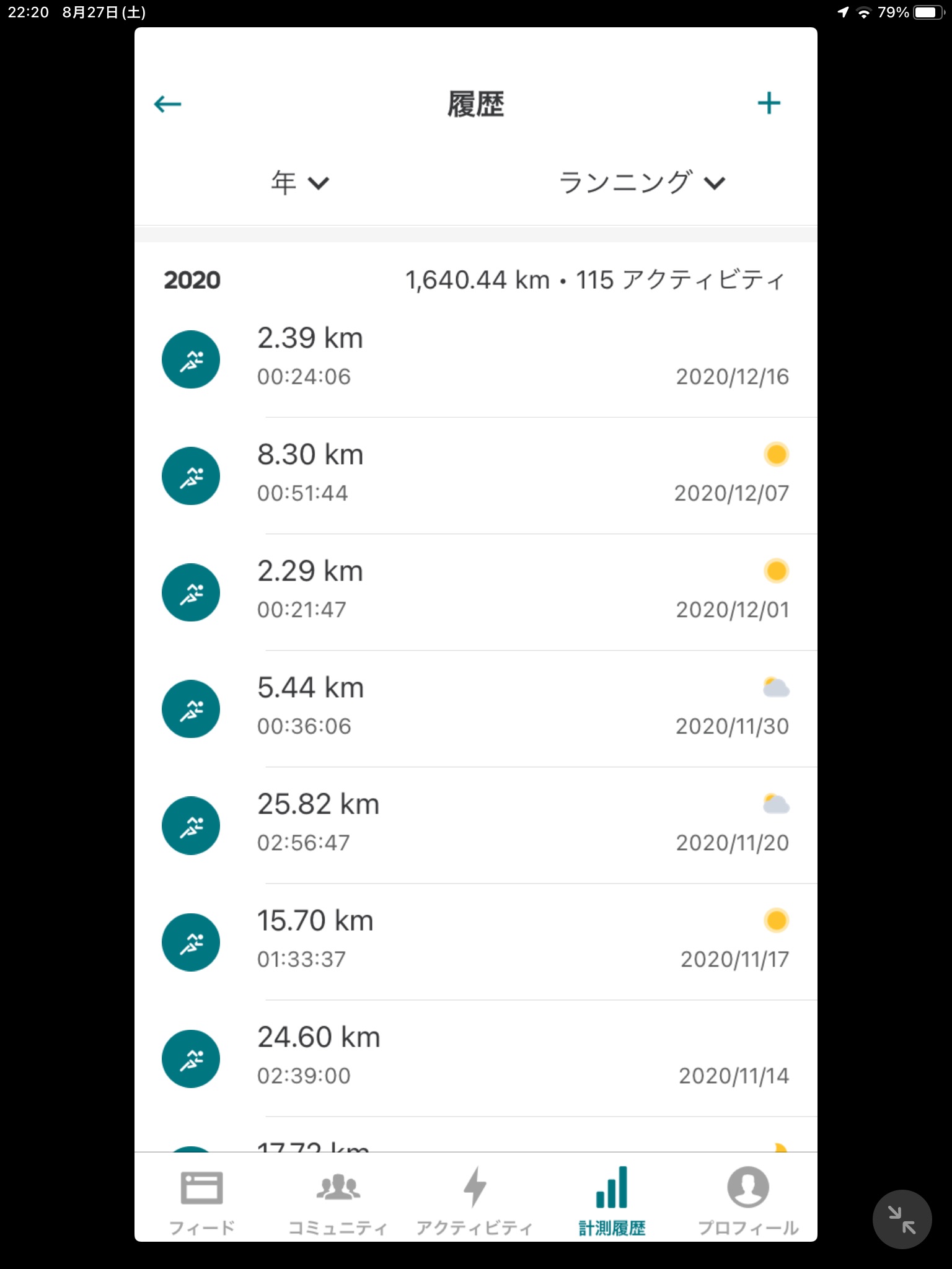 1,640km running completed 2020year